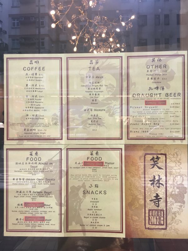 在香港湾仔摩理臣山道上,有一家叫“笑林寺”的武侠主题咖啡厅刚刚营业一周,将于9月底正式开业。它的老板是两位香港年轻人,一位80后男生和一位90后女生,巧的是两人都姓林,他们希望能把咖啡厅做成一项快乐的事业,所以将其命名为“笑林寺”。
