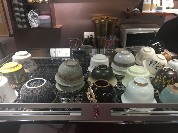 这是一家将西方餐饮和金庸武侠文化的结合的咖啡厅,发挥了香港人的创意理念,用东方茶杯冲泡西方咖啡,这里所有的器皿都是有特点不重样的茶具,包括建盏,白瓷,青花瓷等等。