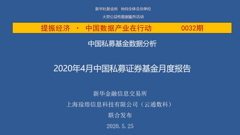 编者按:当前,我国面临着推进疫情防控和加快经济社会发展,打赢脱贫攻坚战的紧迫任务。新华社新华金融信息交易所协同全体会员单位和优秀的数据服务商,共同推出“提振经济•中国数据产业在行动”大型公益性数据服务活动,联合发布各类经济社会数据分析报告,内容涵盖宏观经济数据分析、细分产业数据分析、金融数据分析等,为启动经济引擎提供量化判断和指引参考。《云通数科:中国私募基金数据分析——2020年4月中国私募证券基金月度报告》由上海琻瑢信息科技有限公司研发制作并联合新华金融信息交易所发布。