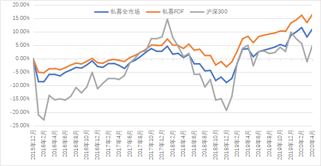 图1:2015.12-2020.04私募云通-私募基金综合业绩指数累计收益率