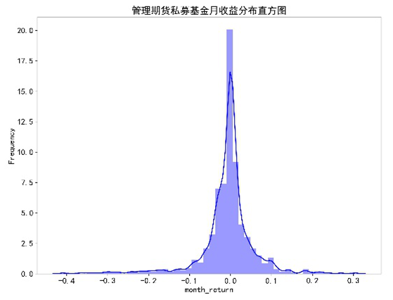 截至2020年4月底,有效样本中管理期货策略总体平均收益率-0.65%,中位数收益率0.00%。由图6,图7可以看出,管理期货产品的收益率两级分化比较明显,其收益率多集中在[-9%,10%]。