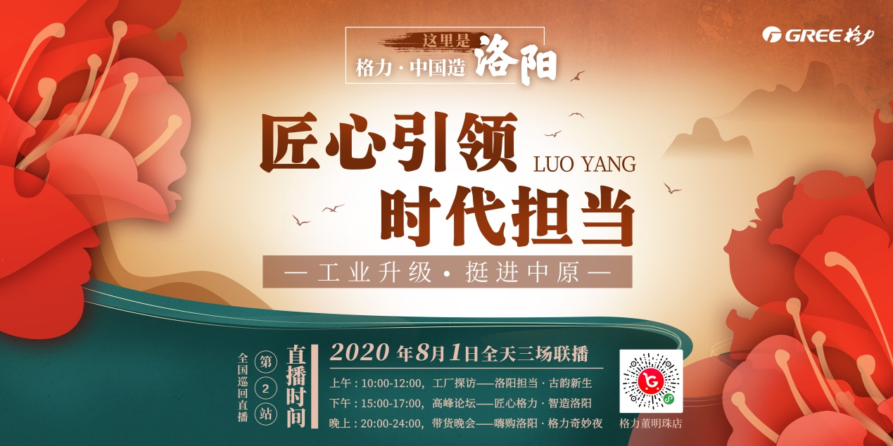 格力智能工厂已成为洛阳新的城市风景,董明珠也将带着绿色健康家电再次来到洛阳。8月1日,格力全国巡回直播洛阳站正式开启。本次活动全天三场直播,网友们不仅能深入了解格力生产基地,感受洛阳古城的风光,还能体验格力品质家电带来的美好生活。想要走进洛阳,走近格力,那就在8月1日进入“格力董明珠店”观看直播吧!