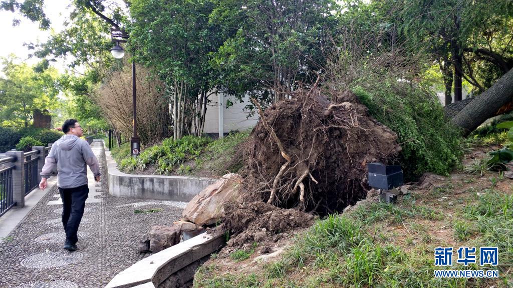 5月1日,南通市民经过倾倒的树木。新华社发(宋诚林 摄)