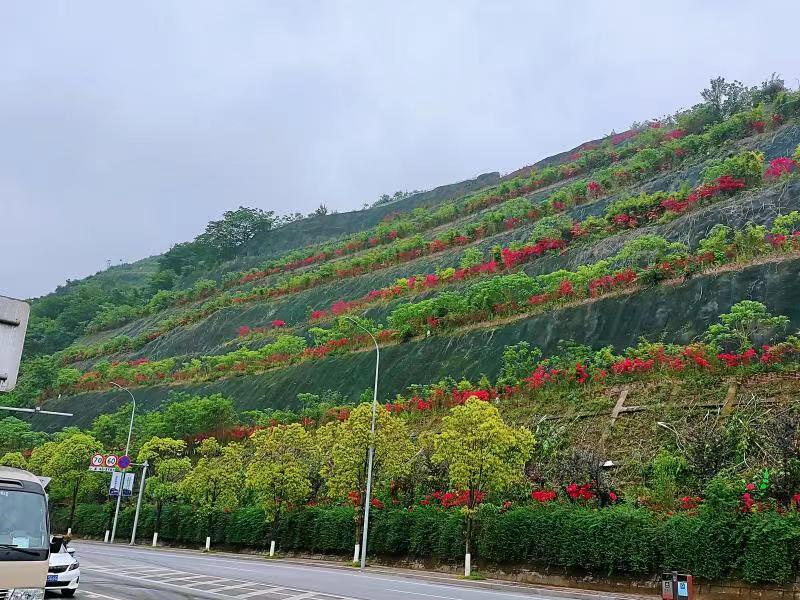 之前,忠义大道护坡杂草丛生,土块裸露,滑坡、落石等现象时有发生,不仅给市民出行带来安全隐患,也成为影响城市美观的一块“斑秃”。
