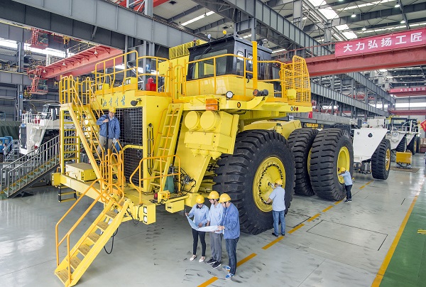 图为湘电集团自主研制生产的220吨矿用电动轮自卸车