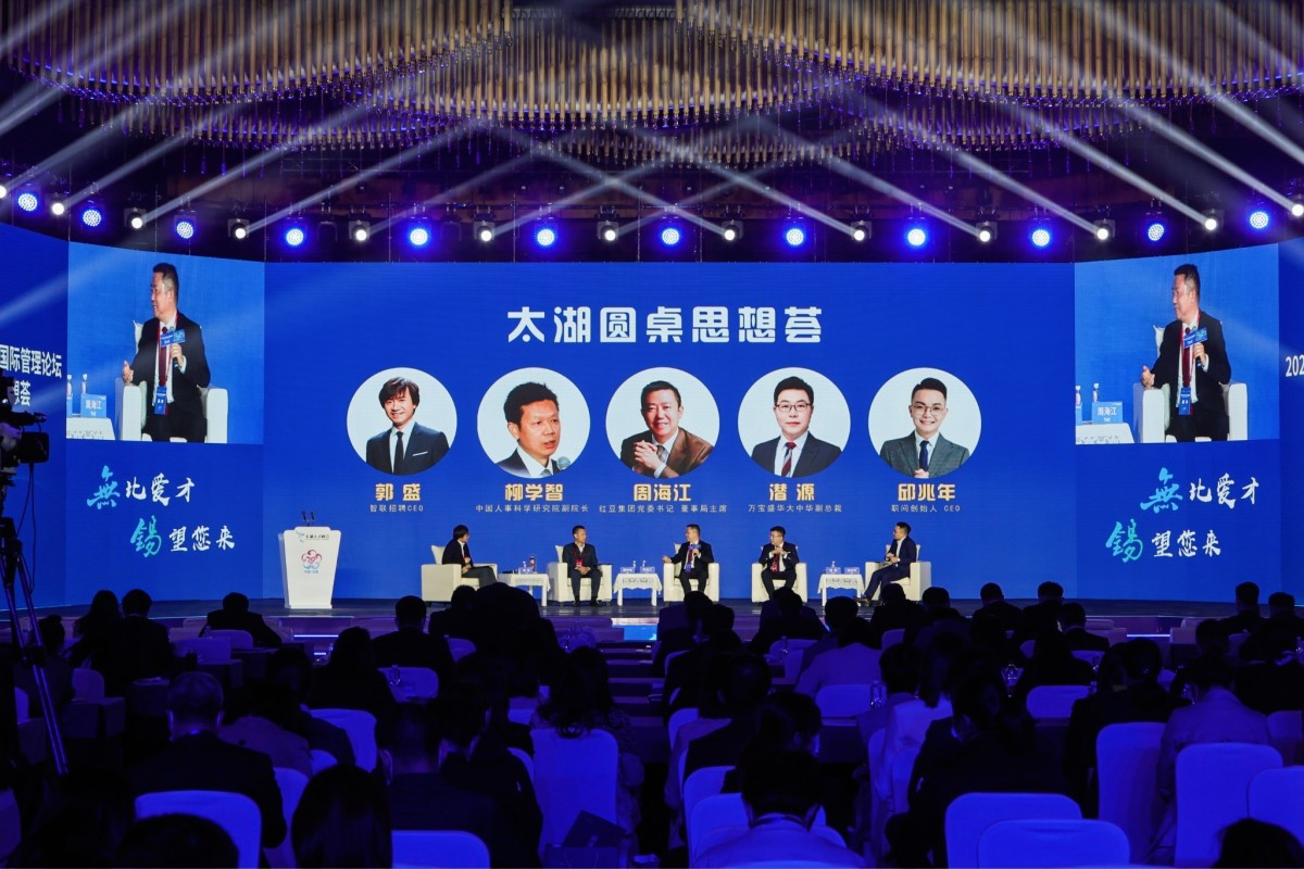 太湖圆桌思想荟对话环节,智联招聘CEO郭盛,中国人事科学研究院副院长柳学智,红豆集团党委书记、董事局主席周海江,万宝盛华大中华副总裁潜源,职问创始人、CEO 邱兆年等专家学者,就“新时代、新人才、新生态 如何开展人才招引育留服”等话题发表观点,凝聚起进一步扩大“太湖人才”品牌影响力的广泛共识,为加速无锡人才产业和创新资源集聚、促进长三角更高质量一体化发展注入强劲思想动能,助力共创更加美好的未来。