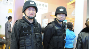 某黄金公司派出“重兵”把守价值昂贵的黄金摆件