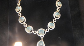 某拍卖行在金博会现场展出价值200万元的蛋白项链