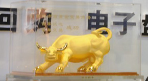 金博会现场展出的黄金摆件--金牛