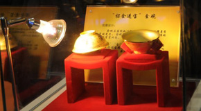 金博会现场展出的黄金摆件--金碗