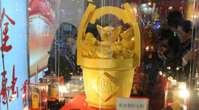 金博会现场展出黄金摆件