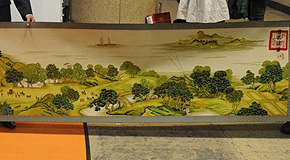 展会现场拍卖十字绣作品《清明上河图》