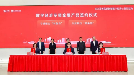 活动现场举行数字经济专项金融产品签约仪式。其中,江苏银行、宁波银行推出的投融贷、科创贷等产品可为数字经济科创企业提供全生命周期、一揽子综合金融服务,助力苏州高铁新城数字经济产业高质量发展。