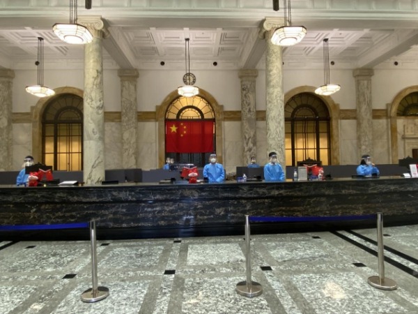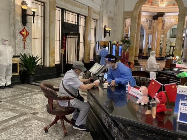 浦发银行第一营业部(上海外滩12号)长期服务于公共事业单位、市属国资国企、金融要素市场、城市更新动迁居民、普惠金融等客群。疫情前,这里每天前来办理各类银行业务的客户络绎不绝。疫情期间,该行5名员工坚持驻守在这里,保障各类金融服务不中断。
