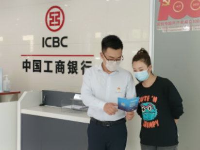 工商银行站前支行员工为小微客户介绍普惠贷款业务