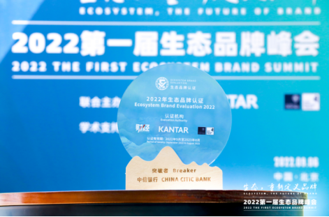 中信银行从全球范围内参评的近百家企业及品牌中脱颖而出,获评首批生态品牌认证的12家品牌之一,并在榜单中处于“突破者”位置,在“用户体验交互、开放协同共创、终身用户价值、共赢增值效用、社会价值贡献”五大核心维度上的表现亮眼,抢先抓住时代先机,不断推动可持续发展。会上发布的《生态品牌发展报告(2022)》主要对近年来生态品牌呈现出的新发展趋势,转型生态品牌遇到的挑战、难点做出了系统性的剖析和总结。其中,该行选送的信用卡中心“中信碳账户”、交易银行部“供应链金融”作为报告中的生态品牌标杆案例,在开放协同共创、社会贡献价值两大维度,彰显了中信银行品牌所取得的成绩。