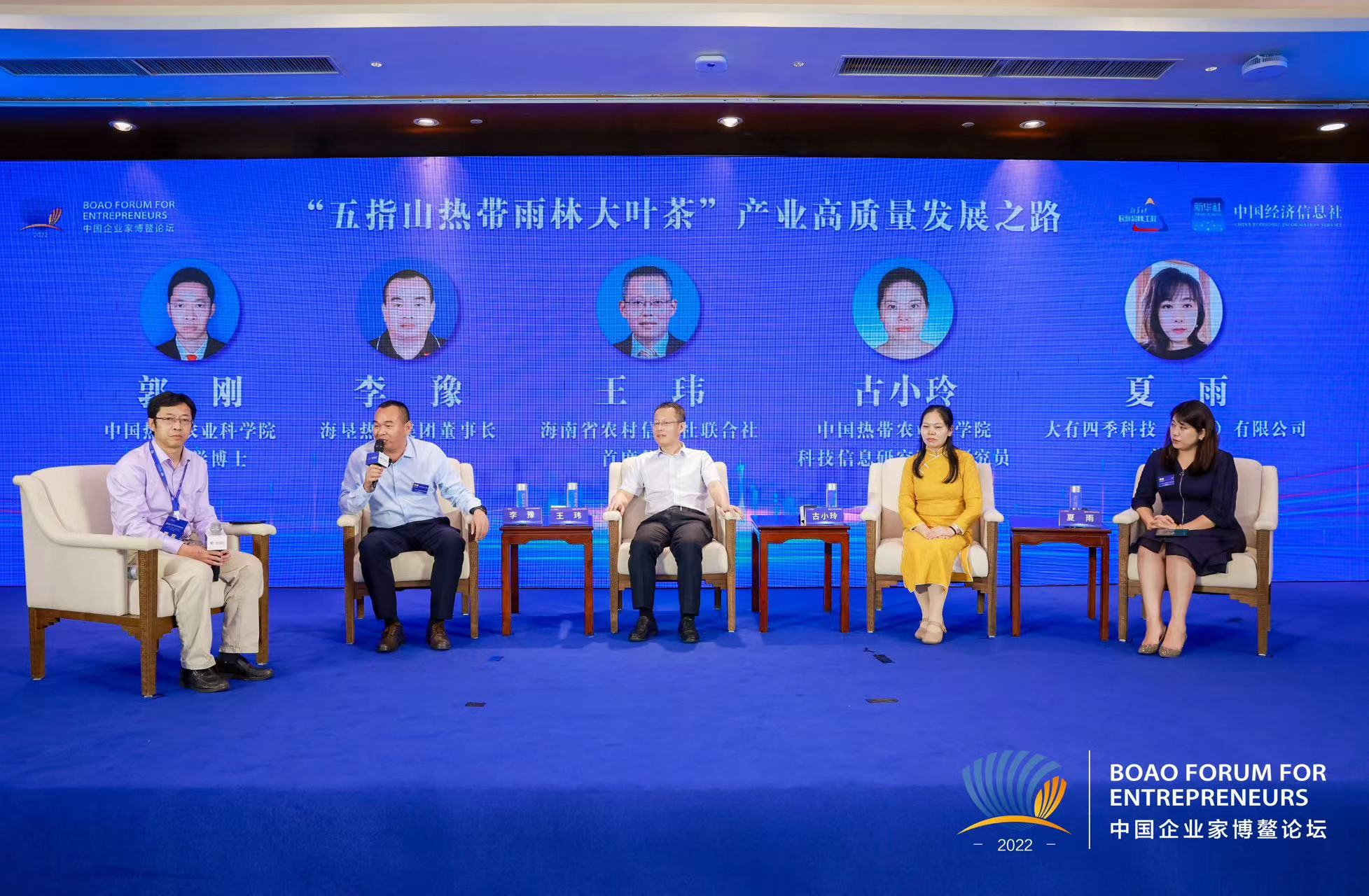新华财经海口11月28日电(记者 陈碧琪 李唐宁)产业振兴是乡村振兴的重要抓手,在11月26日举行的2022中国企业家博鳌论坛分论坛“畅通产业链条·服务乡村振兴——2022金融服务实体经济论坛”上,与会嘉宾聚焦五指山热带雨林大叶茶产业,就加强全产业链建设,完善农业农村信用体系和金融服务体系建设,提升产业数字化信息化水平,以及农业科技助力农产品绿色安全发展等方面展开圆桌对话,探讨海南热带特色农业的高质量发展之路。