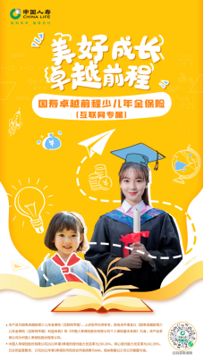 为满足家庭多元化的保险需求,提前为孩子规划未来保障,中国人寿保险股份有限公司(以下简称“中国人寿寿险公司”)推出互联网专属少儿年金保险产品——国寿卓越前程少儿年金保险(互联网专属)。