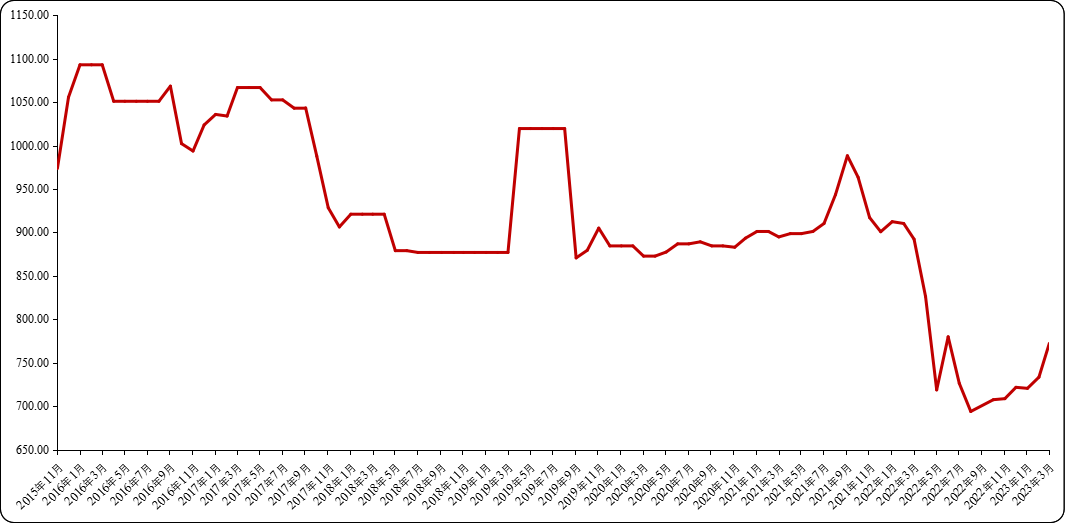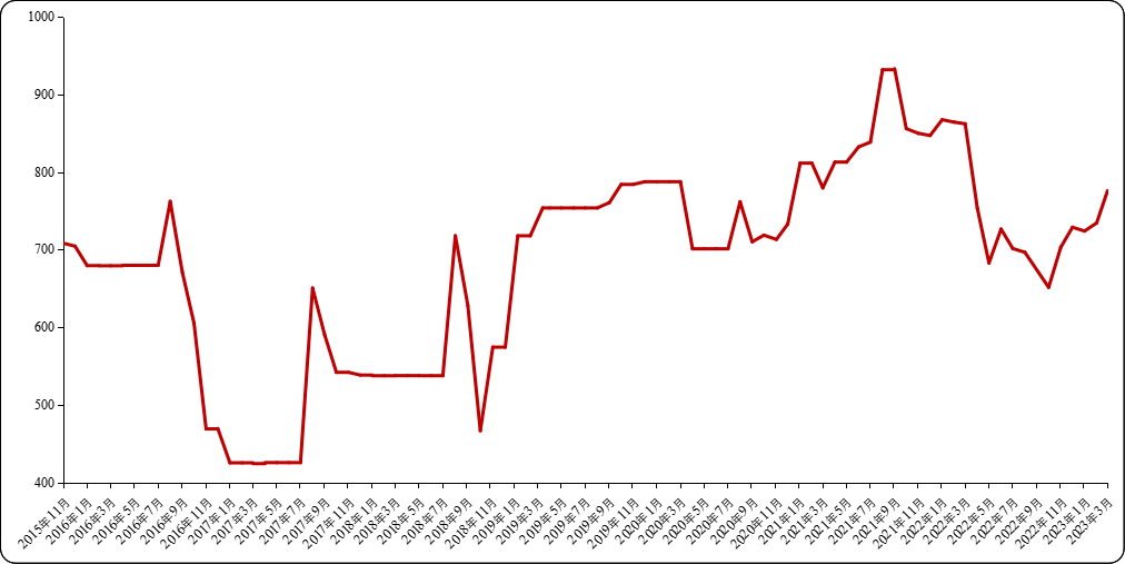 截至2023年3月,柴达木绿色枸杞价格指数报775.89点,较上月上涨41.62点,涨幅5.67%;新华·柴达木有机枸杞价格指数(国际认证)报772.42点,较上月上涨38.79点,涨幅5.29%。