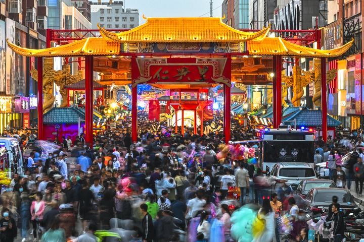 6月1日,游人在四平市仁兴里沉浸式文旅街区内参观游览。新华社记者 许畅 摄
