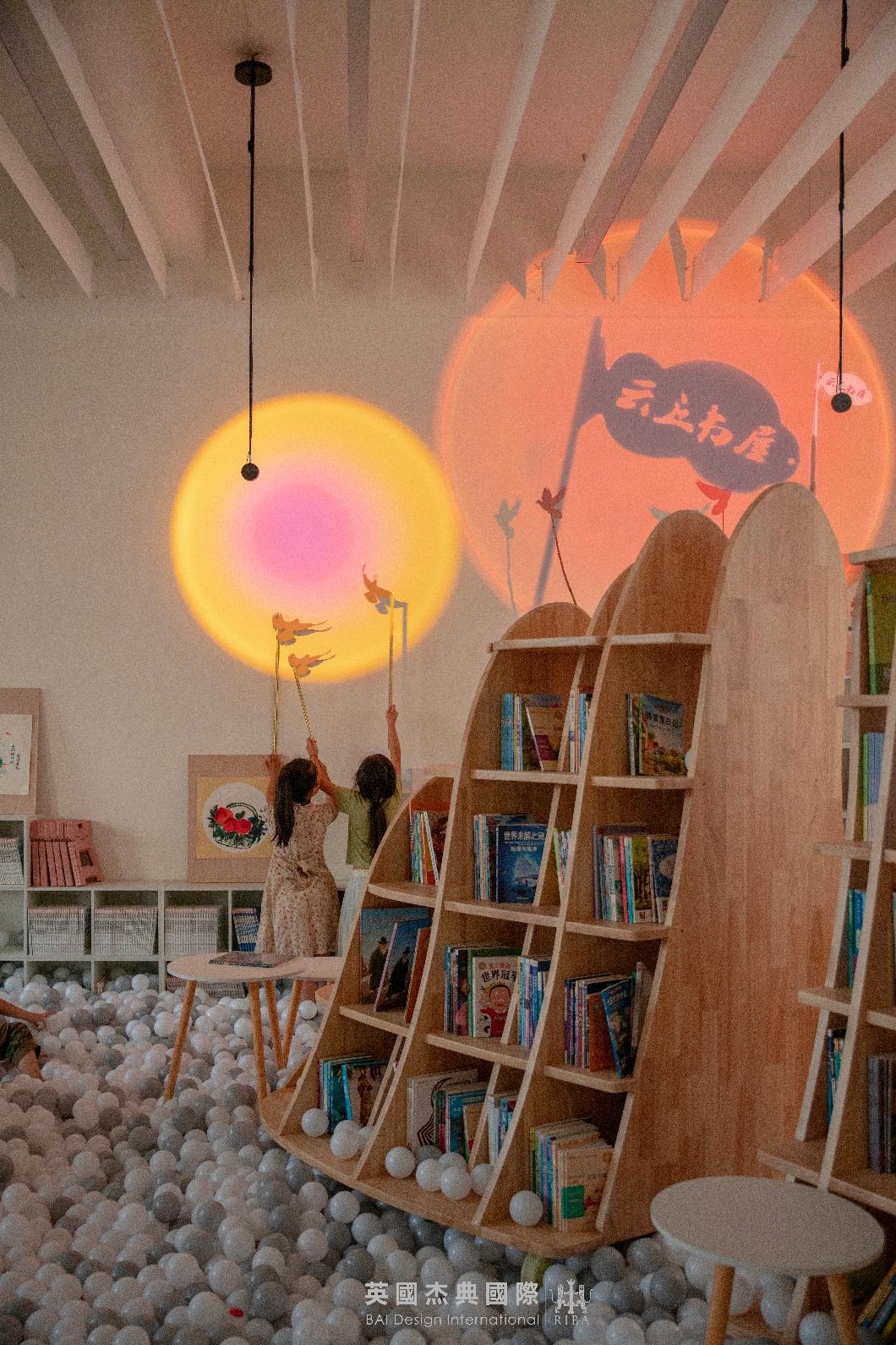 "云丘书屋"以关注乡村儿童的成长为出发点,创造了一个小中见大、学与玩兼具的童趣空间,为乡村儿童的教育提供充满无限可能的学习成长空间。这里不仅可以尽情阅读各种书籍,还可以参与有趣的游戏,为乡村儿童插上梦的翅膀。杰典建筑将"云丘书屋"打造成一个叙事且具有趣味性的场景空间,从中国故事中汲取灵感,营造出舒适有趣的阅读区域,创意元素以及声音和灯光效果的运用,都为孩子们带来了全新的阅读体验。