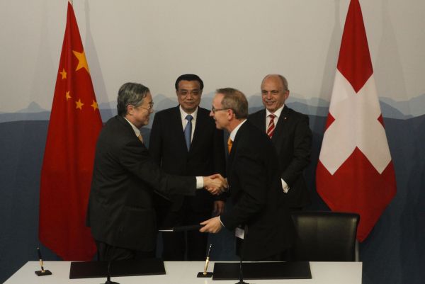 2013年5月24日,中国人民银行行长周小川与瑞士联邦财政部国务秘书阿姆布尔在瑞士首都伯尔尼共同签署了《中国人民银行与瑞士联邦财政部金融对话谅解备忘录》。中华人民共和国国务院总理李克强与瑞士联邦主席毛雷尔共同见证了签字仪式。(完)