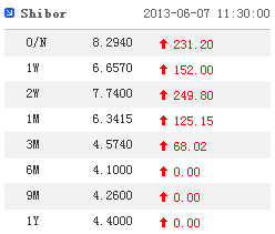 中国外汇交易中心公布的数据显示,Shibor 7日继续大幅攀升,其中隔夜利率上涨231.20个基点,7天利率涨152个基点。
