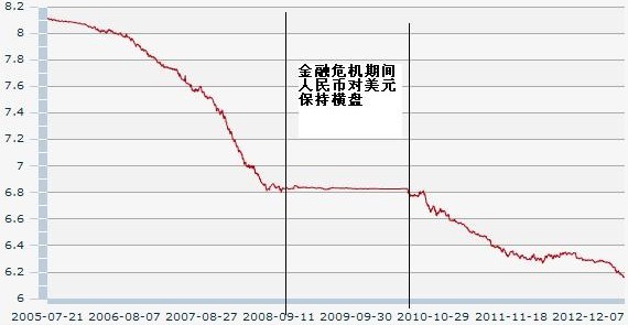 人民币对美元汇率中间价在金融危机时期保持横盘 来源:中国人民银行网站