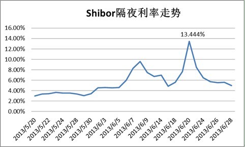 附图:上海银行间同业拆放利率(Shibor)走势图(2013/5/20-2013/6/28)