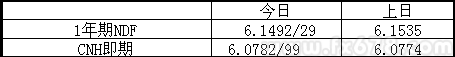 一外资银行交易员称,即期还是不动,11月横盘在6.09上方,导致远期汇率也连续走贬,远期市场对年底人民币升值加速的预期,正逐渐被修正。