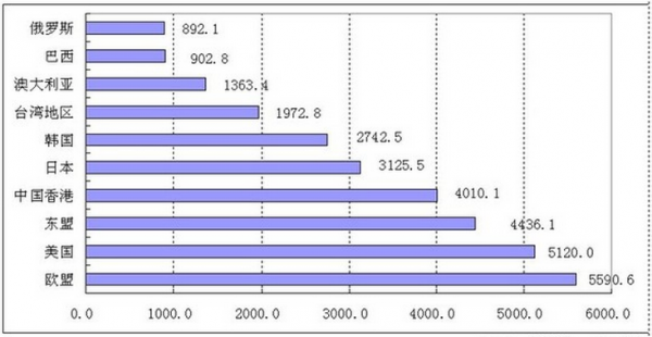 图2、2013年中国内地对外贸易十大伙伴
