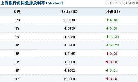 北京(CNFIN.COM / XINHUA08.COM)--7月28日,银行间市场主要回购利率普遍回落,资金面趋于宽松。新股IPO申购资金今日起陆续解冻,月底前市场资金面预期料保持乐观。