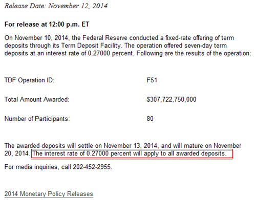 图:美联储正在试验的回购利率TDM-Term Deposit Facility 已经从0.26上升到0.27
