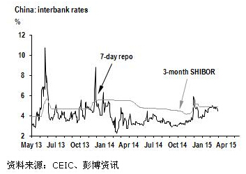 目前,我们预测2015年第二季度将会有一次50个基点的降准和一次25个基点的降息,并结合一系列定向措施(如抵押补充贷款、中期借贷便利、常备借贷便利、定向降准)来管理流动性。由于近期的增长势头和流动性动态,预计下一次降准最早可能出现在4月份。论点背后的理由如下。