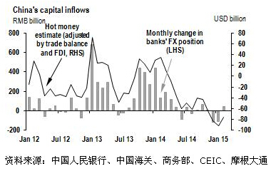 第二,在资本持续外流的背景下,市场可能会对相对紧张的流动性感到担忧。我们已在早前的文章中指出,通过外汇储备积累注入流动性的传统渠道已在近几个季度中消失。最新数据显示,2月份金融机构外汇占款小幅增长422亿元,尽管这远远不足以抵消1月和12月分别为1083亿元和1,184亿元的下降。经贸易差额和外商直接投资调整后,我们估计2月份的资本外流将会有所放缓,降至-762亿美元,而在1月和12月分别为-916亿美元和-823亿美元(图3)。虽然如此,这个水平仍是过去10年中出现的第三低点。由此,这就为通过降准或替代方式(如抵押补充贷款、中期借贷便利、再贷款)注入永久流动性提供了可能。值得注意的是,据报道,中国人民银行在3月17日已经续做了到期的中期借贷便利,金额增加到5000亿元(图4)。