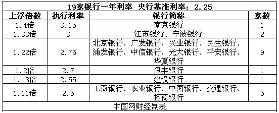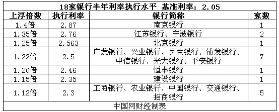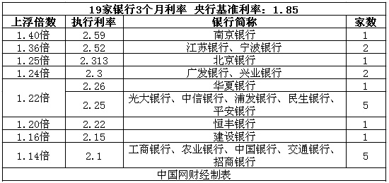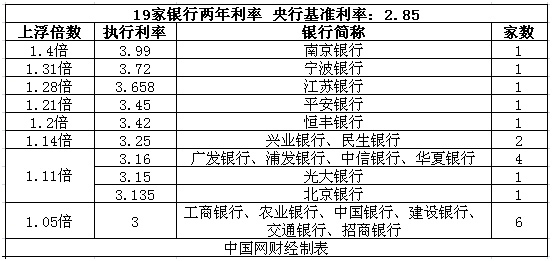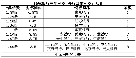 数据显示,19家银行中,目前尚未有一家银行上浮至1.5倍。其中,城商行和股份制银行对执行利率上浮更加积极,南京银行的7档利率均为最高水平,有4档期利率上浮至基准利率的1.4倍。而五大行有3档利率都仅采取基准利率,在另外3档利率上,最高的也就上浮了1.12倍。另外,交通银行有3档利率均超过其他四大行0.05个百分点。