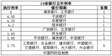 另外,在五年期定存利率上,南京银行、江苏银行排名居首,均为5%。工行、农行、建行、中行、交行、招行、光大银行、兴业银行均为3.75%的最低水平。