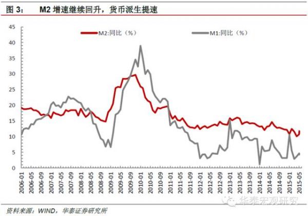 信贷派生叠加外占改善,货币供给显著回升。6月末M2余额133.34万亿元,同比增长11.8%,增速比上月末高1.0个百分点,比去年末低0.4个百分点。6月份资本市场震荡下客户保证金回流银行存款,此外信贷投放显著走高,信用派生有显著提速,预计随着存贷比取消进一步弱化贷款投放限制,货币派生也将更加积极;另一方面,4月份以来人民币贬值压力趋缓,外汇占款已连续两月实现正增长,对M2的拖累有所缓和。M1余额35.61万亿元,同比增长4.3%,增速比上月末低0.4个百分点,比去年末高1.1个百分点,基础投放货币整体更注重微调。