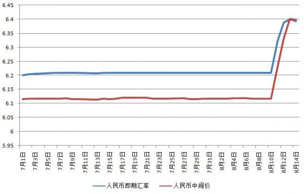 北京(CNFIN.COM / XINHUA08.COM)--人民币兑美元即期汇率14日追随中间价止跌反弹走势收盘上涨72个基点,在大跌三天后首次收涨。本周(8月10日-8月14日)人民币兑美元汇率中间价累计下跌4.38%,人民币兑美元即期汇率下跌2.85%,均创历史最大单周跌幅。同时人民币即期市场成交量超过1500亿美元。