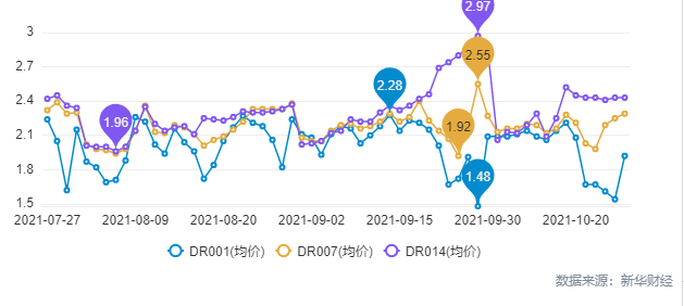 银行间质押式回购市场DR001-DR014走势