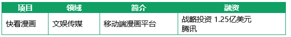 8月27日,快看漫画宣布获得腾讯1.25亿美元投资,本次融资后,快看漫画表示会持续加大技术投入,并完善00后内容社区的搭建,坚持“社区+IP”战略。