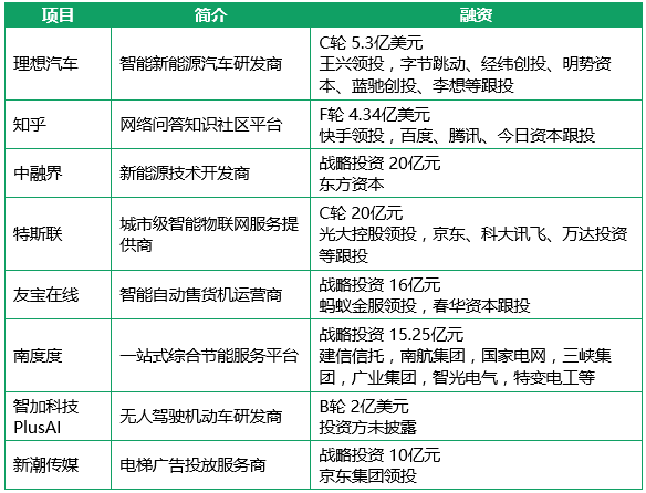 本月国内单笔融资超10亿元的融资共有8起: