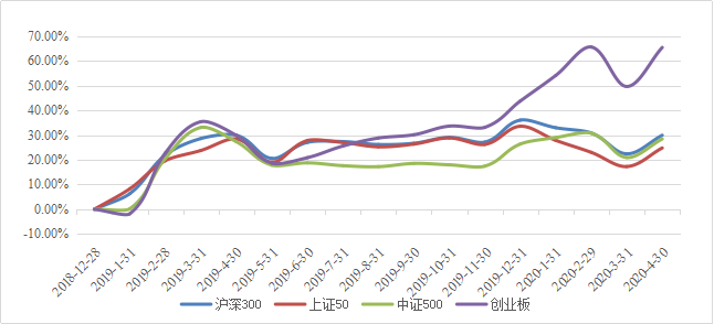 在全球资金配置重启、基本面逐步恢复、流动性充裕等因素的共振下,A股在5月中上旬走出慢涨行情,但中旬以来的中美大国博弈持续发酵,令市场情绪进一步降温。总体来看,主要股指在5月的表现平淡,其中创业板指月内涨幅1.54%;上证综指跌0.27%,沪深300下跌1.16%,中证500上涨0.98%。