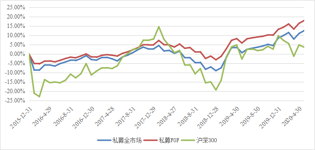 图1:2015.12-2020.05私募云通-私募基金综合业绩指数累计收益率