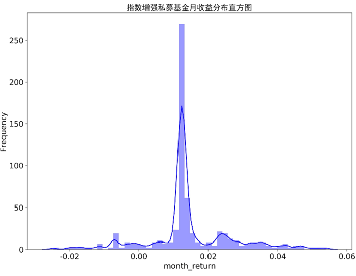 有效样本中,指数增强策略5月份总体平均收益率1.42%,中位数收益率1.25%。由图4、图5可以看出,指数增强产品的收益率多集中在[1%,2%]。