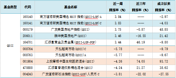 注:基金收益统计剔除ETF联接基金、因巨额赎回等出现净值异常的基金,不同份额分别计算。另外由于国际市场交易结算时间不同、业绩披露频率不同等原因,QDII基金在统计日无净值披露的使用最近一期净值披露数据。