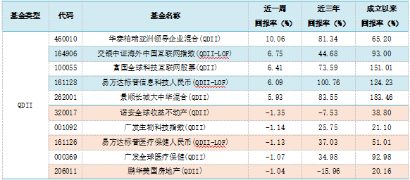 注:基金收益统计剔除ETF联接基金、因巨额赎回等出现净值异常的基金,不同份额分别计算。另外由于国际市场交易结算时间不同、业绩披露频率不同等原因,QDII基金在统计日无净值披露的使用最近一期净值披露数据。