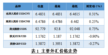 外汇:本周,受美指反弹影响,人民币兑美元幅走贬,短期市场继续谨慎观望美联储政策态度,美指方向仍是人民币关键指引。当前,鉴于人民币双向波动的特征更加明显,建议有结售汇需求的客户树立风险中性意识,运用比率远期、加盖型比率远期、远期差额结汇等远期产品锁定价格,规避人民币的双向波动风险。