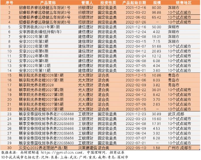 2月21日,银保监会发布《关于扩大养老理财产品试点范围的通知》,宣布自2022年3月1日起,养老理财产品试点范围由“四地四机构”扩展为“十地十机构”,包括北京、沈阳、长春、上海、武汉、广州、重庆、成都、青岛、深圳十个城市,和工银理财、建信理财、交银理财、中银理财、农银理财、中邮理财、光大理财、招银理财、兴银理财和信银理财十家理财公司。
