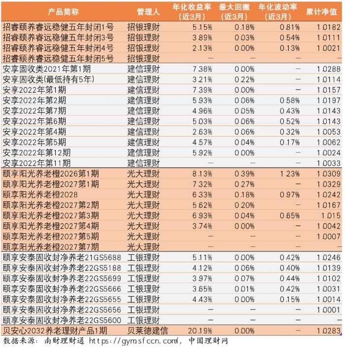 养老理财收益、波动性优势明显 建信、光大均有多款产品近3月年化收益超7%